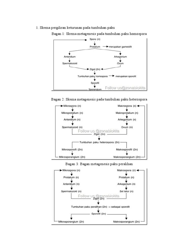 Pada metagenesis tumbuhan paku, baik pada paku homospora, paku heterospora, ataupun paku peralihan, . Perhatikan skema pergiliran keturunan (metagenesis) pada tumbuhan paku berikut. Dua fase utama dalam metagenesis tumbuhan paku homospora adalah fase . Pada metagenesis tumbuhan paku baik pada paku homospora paku heterospora ataupun paku peralihan pada prinsipnya sama. Tumbuhan berikut yang mengalami metagenesis keturunan, menghasilkan spora adalah.